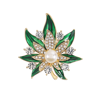 Weiman Pearl Flower Green Leaf Plant Brooches Luxury Women Crystal Rhinestone Gold Plated Alloy Customize Designer Brooch Pins