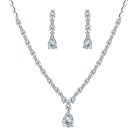 Top Quality 3A Cubic Zirconia Water Drop CZ Necklace and Drop Earring Bridal Wedding Jewelry Sets