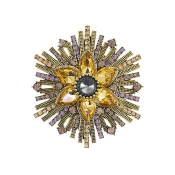 Weiman Yellow Style Flower Brooches Luxury Women Fashion Purple Crystal Rhinestone Gold Plated Alloy Customize Designer Pins